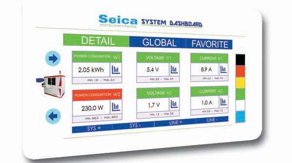 工業(yè)監(jiān)控節(jié)省時(shí)間,并提供了生產(chǎn)線狀況的全面概述。下面的表格代表了 Seica Suite 界面。所有的傳感器都由一個(gè)控制軟件顯示在一個(gè) Windows 平臺(tái)上,并且可以自定義用戶界面。